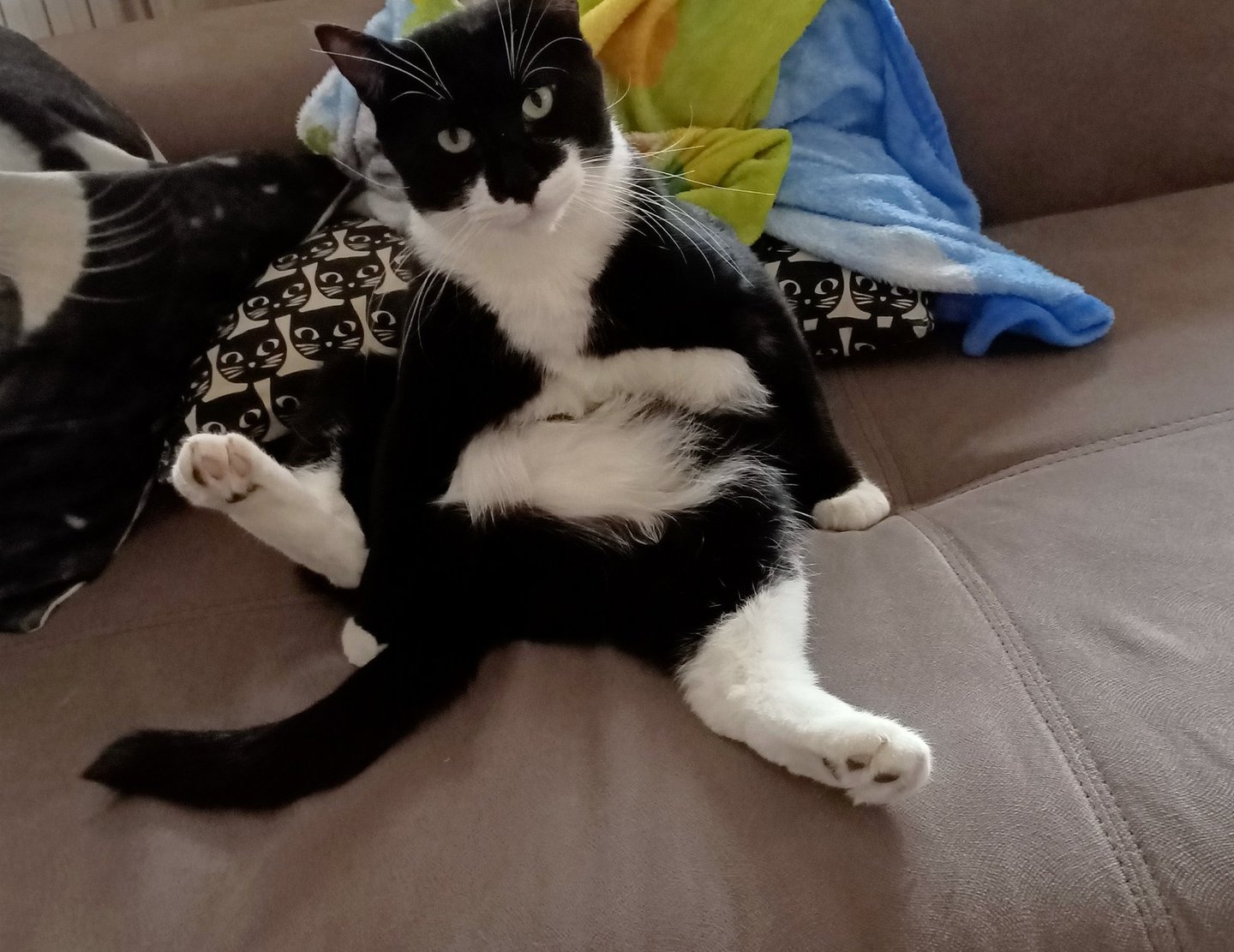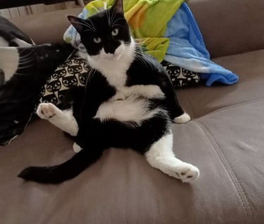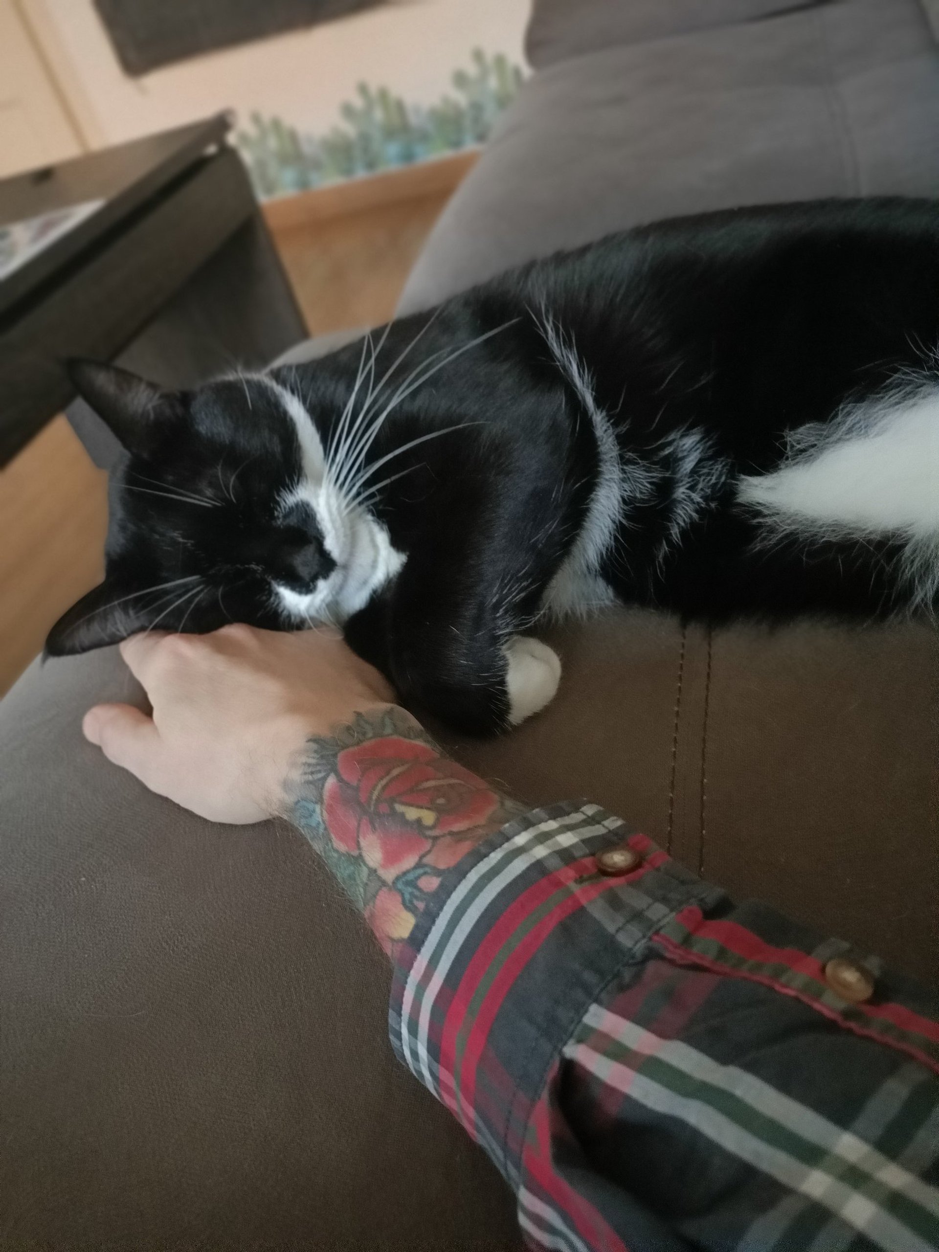 Cuando mis pulmones están peor, se tumba sobre mi pecho y no se mueve durante horas, dándome calor y compañía silenciosa.